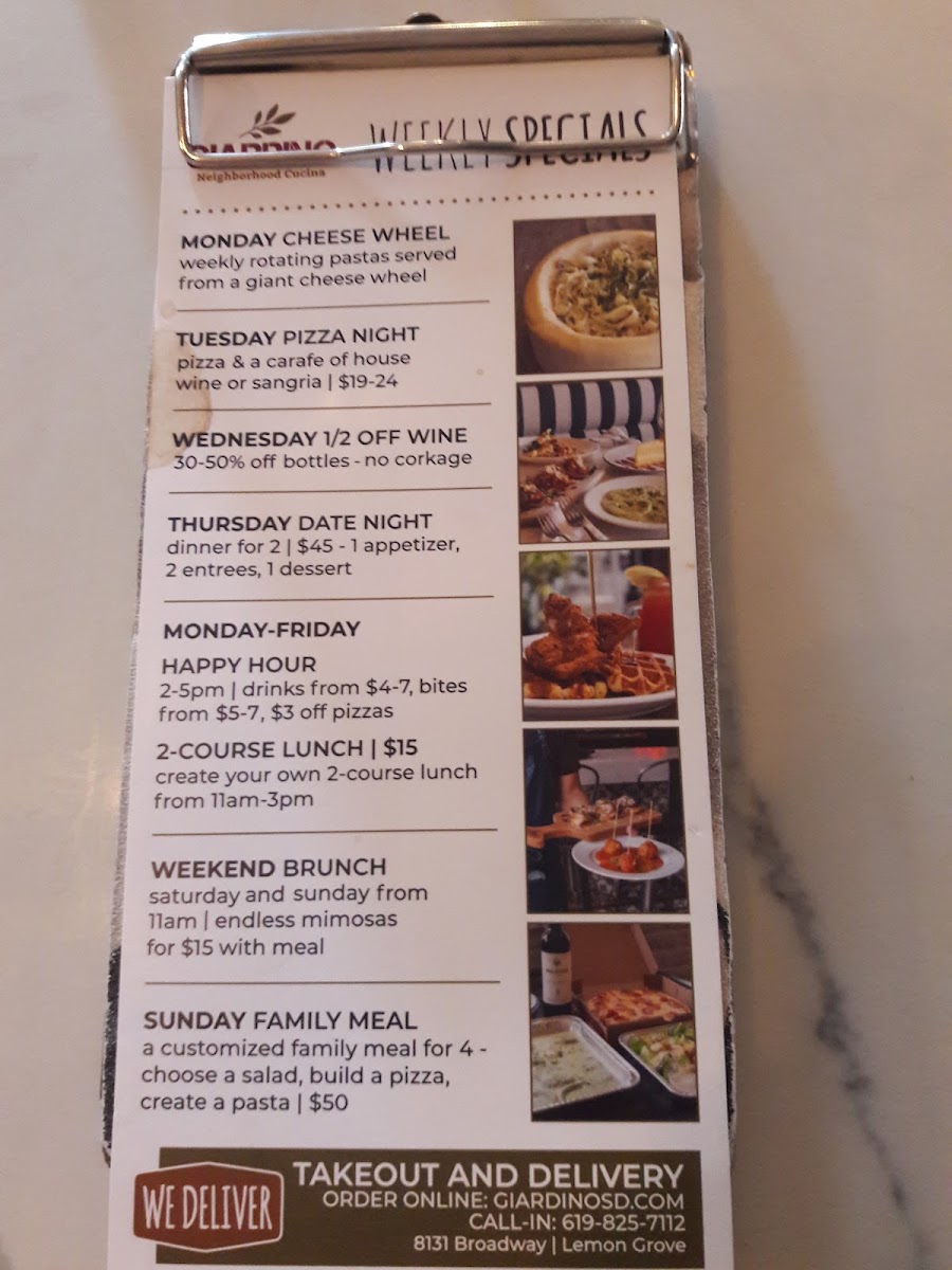 Giardino, located at 8131 Broadway in Lemon Grove, CA, offers a captivating Italian dining experience. The menu artfully combines traditional flavors with modern flair, showcasing an array of delectable options. Start with their Cheese and Charcuterie Board paired with house-made fig jam, a perfect shareable starter for any occasion.